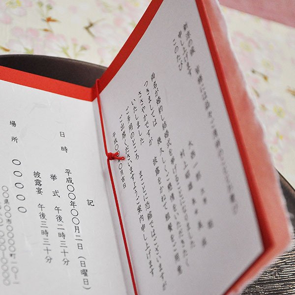 純国産の手漉き和紙を使った暖かい和風招待状です。