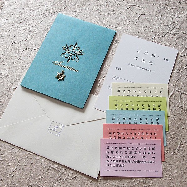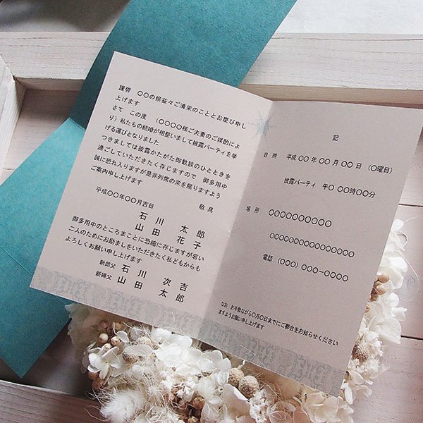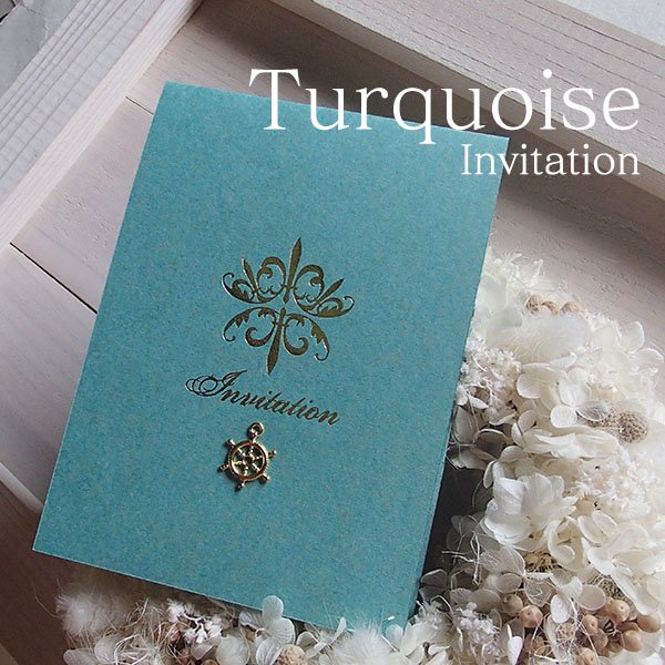 ターコイズ結婚式招待状(印刷込)